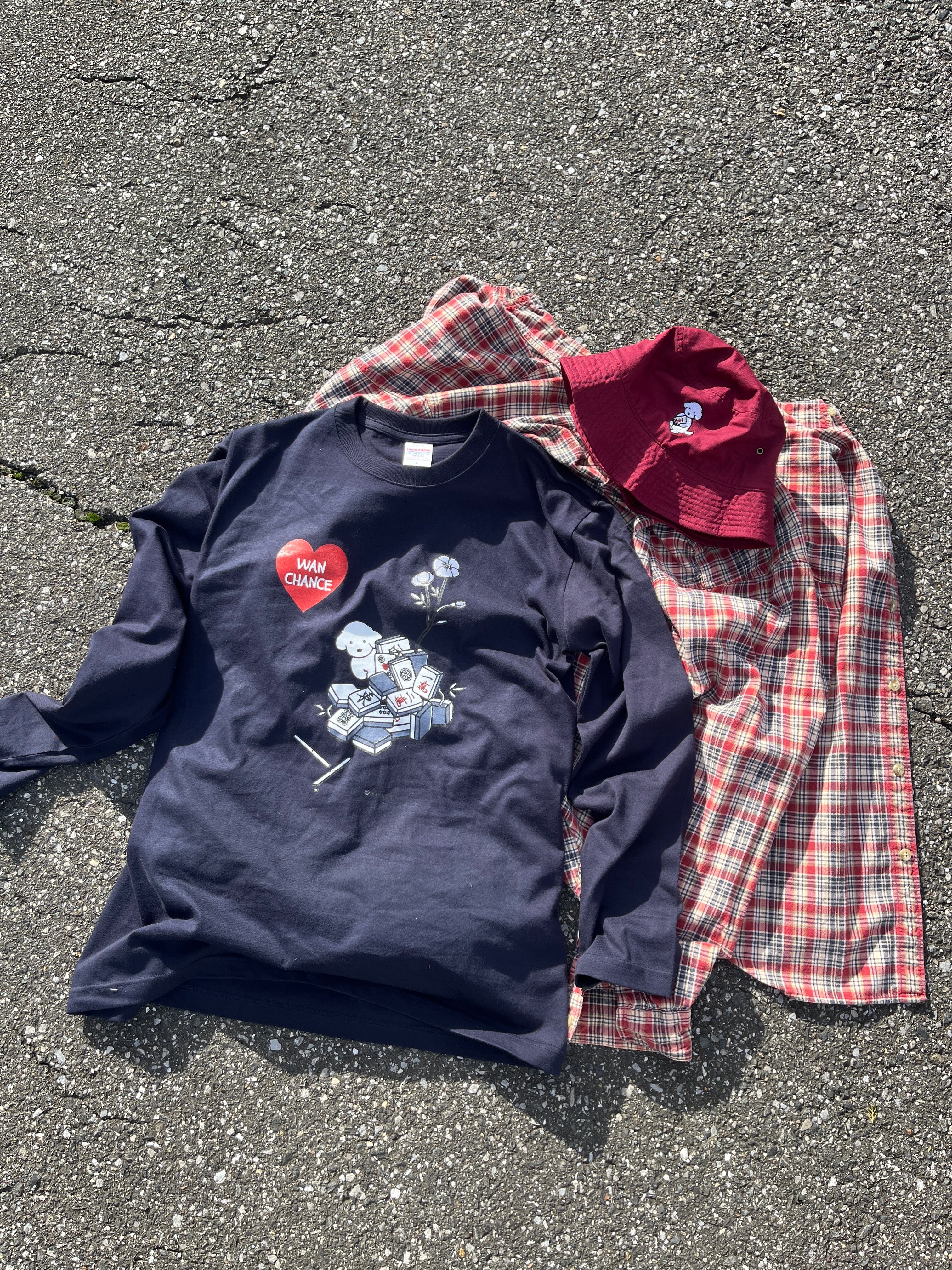 リブ無しロングスリーブTシャツで、レイヤードスタイルで重ね着もお勧めです。